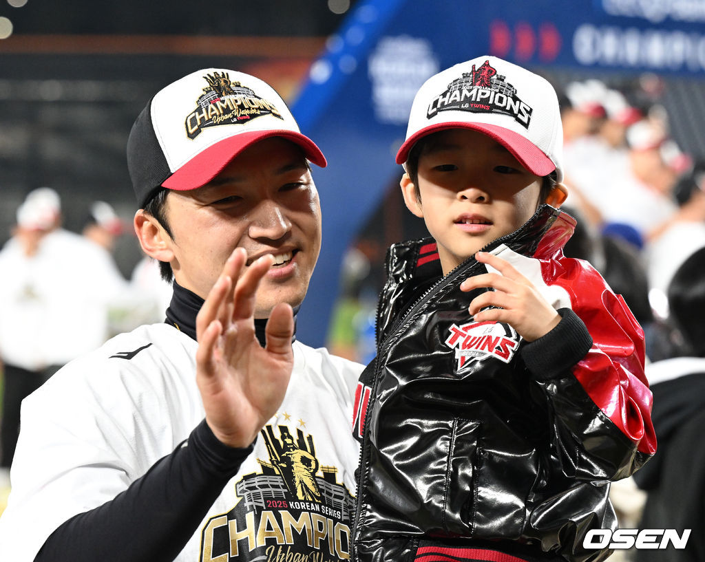 LG 박해민이 아들과 기념촬영을 하고 있다. 2025.10.31 /sunday@osen.co.kr
