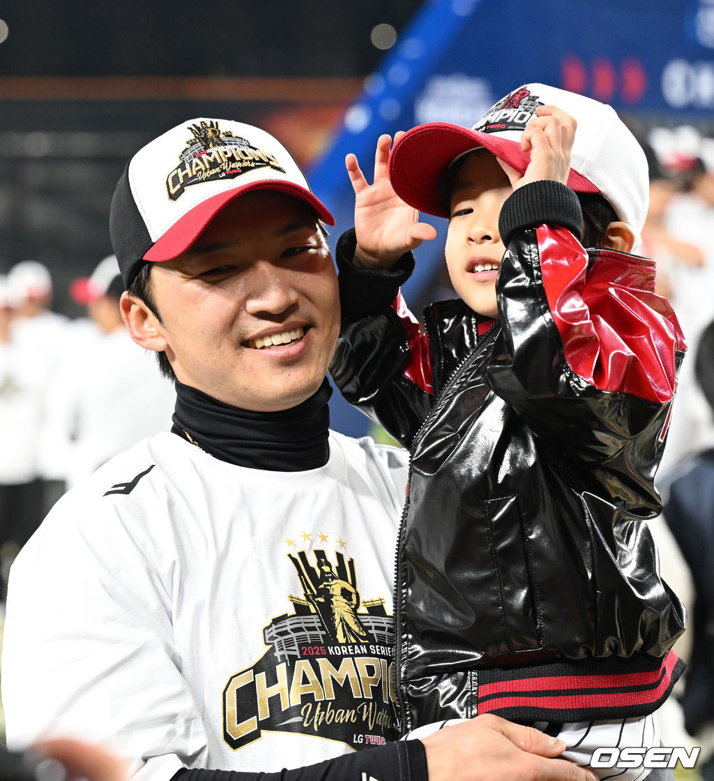 LG 박해민이 아들과 기념촬영을 하고 있다. 2025.10.31 /sunday@osen.co.kr