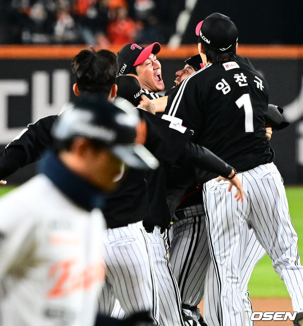 LG 오지환, 박동원 등이 우승을 기뻐하고 있다. 2025.10.31 /jpnews@osen.co.kr