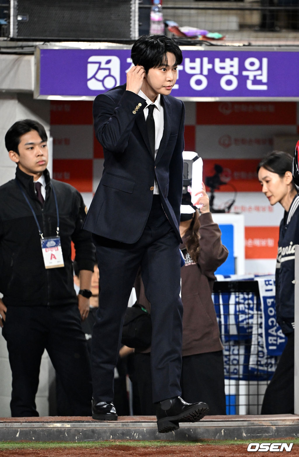 경기에 앞서 그룹 NCT 도영이 애국가를 부르기 위해 입장하고 있다. 2025.10.31 /sunday@osen.co.kr