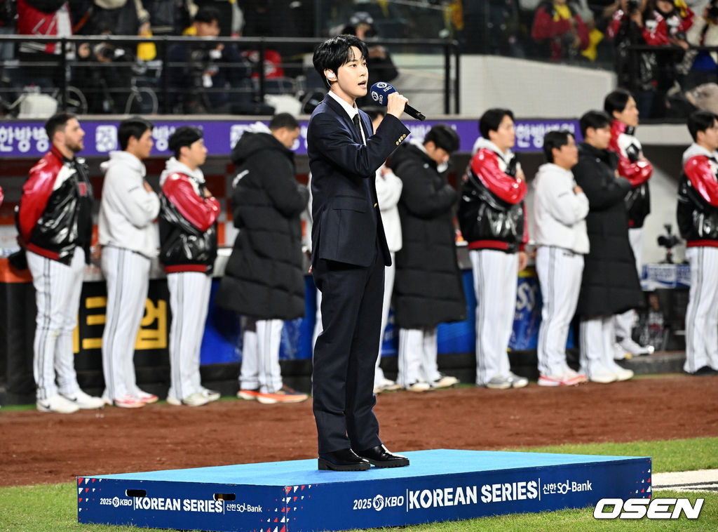 경기에 앞서 그룹 NCT 도영이 애국가를 부르고 있다. 2025.10.31 /sunday@osen.co.kr