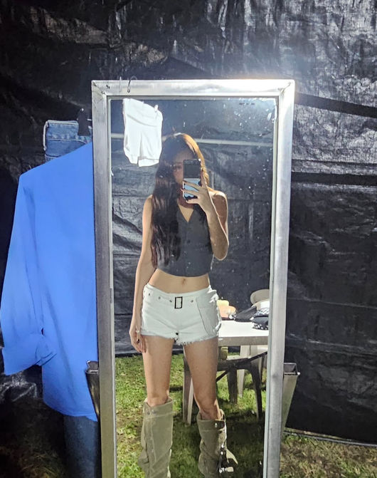 소유는 상체에 꼭 맞는 베스트에 크롭으로 허리 라인과 납작한 배를 드러냈다. 이어 소유는 화이트 핫팬츠에 부츠를 신어 긴 다리를 자랑했다.