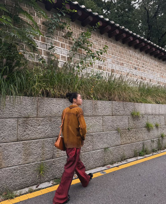 꼭 노출 의상만 있는 건 아니었다. 소유는 브라운과 버건디 컬러의 상하의를 입고 쿨하게 묶은 머리 스타일링으로 시원한 걸음걸이를 보이며 자신만의 사복 차림을 보였다.