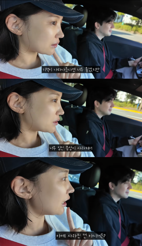영상 속 김서연은 병원으로 향하며 “배가 살살 아프다. 오히려 마음이 좀 가볍다”며 “기적이 나타나준다면 너무 좋겠다. 임신 증상이 거의 사라졌지만 완전히는 아니다”라고 담담히 말했다.
