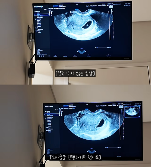 그러나 다시 찾은 병원에서 아기의 심장은 더 이상 뛰지 않았다. 의사는 “아기가 만들어지는 과정은 신의 영역이다. 이런 일은 전체 임신 중 7~10%에서 발생한다”며 “이번에는 아기 쪽 문제로, 다음 임신에는 영향이 없을 것”이라고 위로를 건넸다.