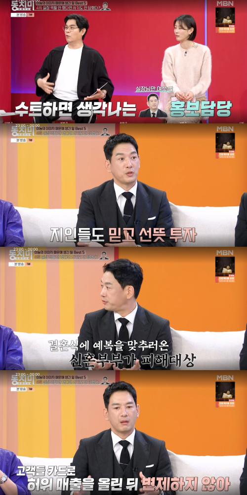 박정철은 가게가 “10년 넘게 잘 유지됐다”며, “이 친구가 뒤에서 어떤 일을 했는지는 끝내 모른다”고 밝혔다. 박정철은 “하루 이틀 본 친구가 아니라 20년 이상 형제처럼 지내온 친구에게 당한 사기라 충격이 더 컸다”며 “단꿈에 젖어 있는 신혼부부들이 피해를 당했고, 고객들의 카드로 허위 매출을 올린 뒤 변제하지 않았다. 2년 동안 부가세만 8억 원이 넘는다”고 말했다.