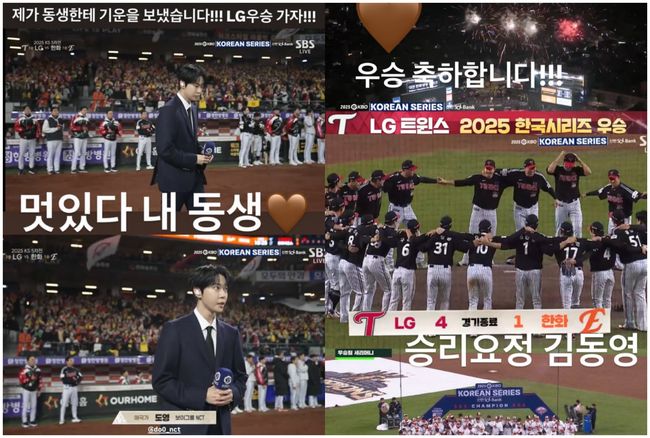 전날 10월 31일 배우 공명은 자신의 소셜 계정에 여러 장의 사진을 게시했다. 공명이 게시한 사진은 배우 공명의 동생으로 알려진 NCT 도영이 정장을 입고 등장하는 모습이었다. 공명은 해당 화면을 캡처하며 "제가 동생한테 기운을 보냈습니다! LG 우승 가자!"라며 "멋있다 내 동생"이라며 하트를 붙이는 정성을 보였다.
