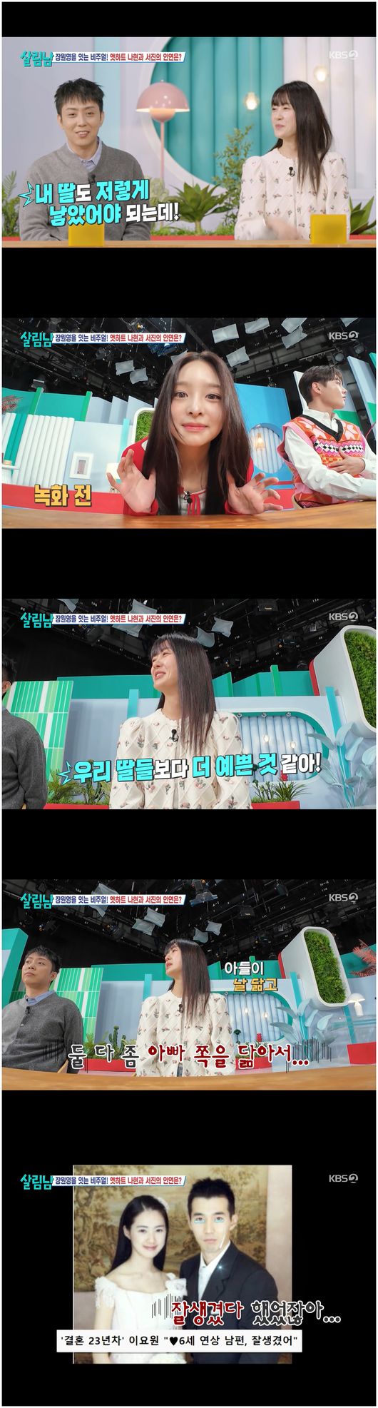 1일 방영된 KBS2TV 예능 '살림남2'에서는 새 안방마님 이요원이 편안하게 자리한 가운데 은지원이 오늘의 게스트를 소개했다. 은지원은 “오늘 게스트는 장원영, 카리나를 잇는 엣하트 나현 씨다”라고 말했다. 오목조목한 이목구비에 단정하고 깨끗한 미소가 빛나는 나현은 등장부터 이요원의 찬사를 받았다.