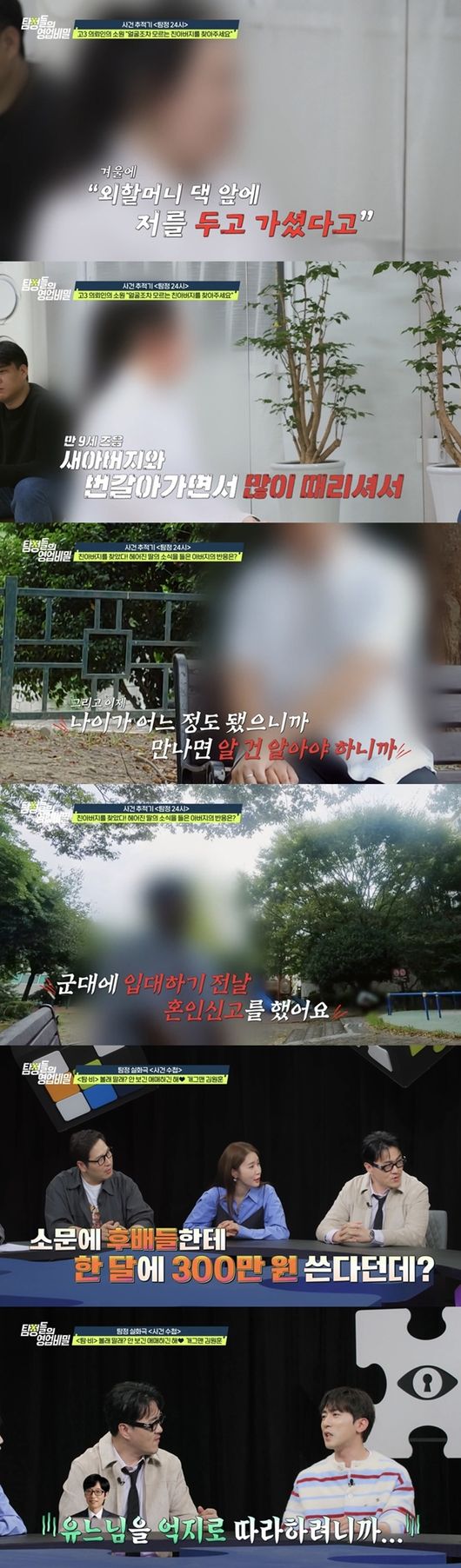 새아버지와 친어머니의 학대 속에 자란 고3 소녀의 친아버지가 '탐정들의 영업비밀'에 등장, 그동안 감춰졌던 충격적인 가족사를 공개한다.