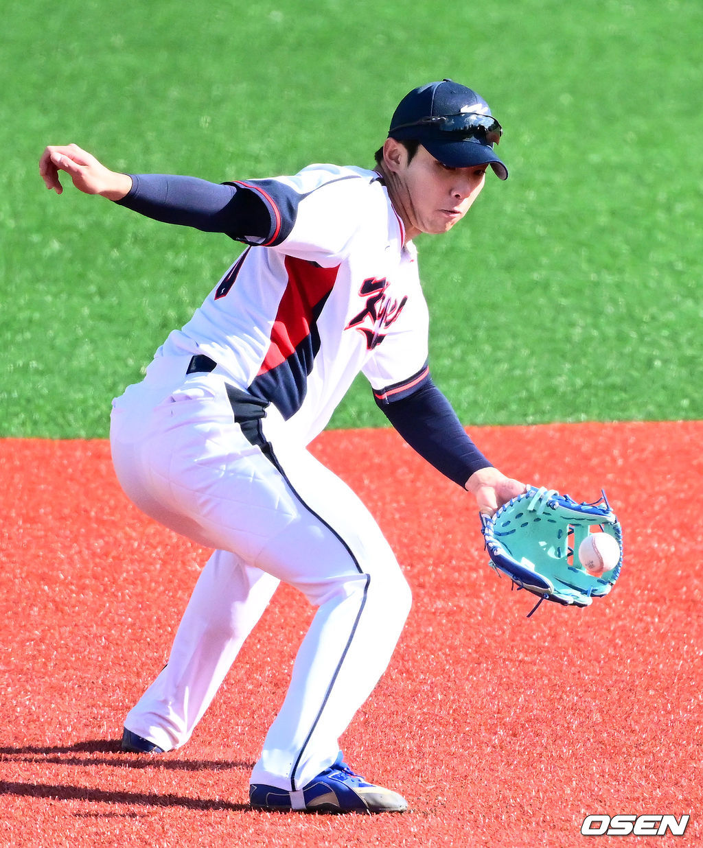 야구대표팀 김영웅이 수비 훈련을 하고 있다. 2025.11.02 /jpnews@osen.co.kr