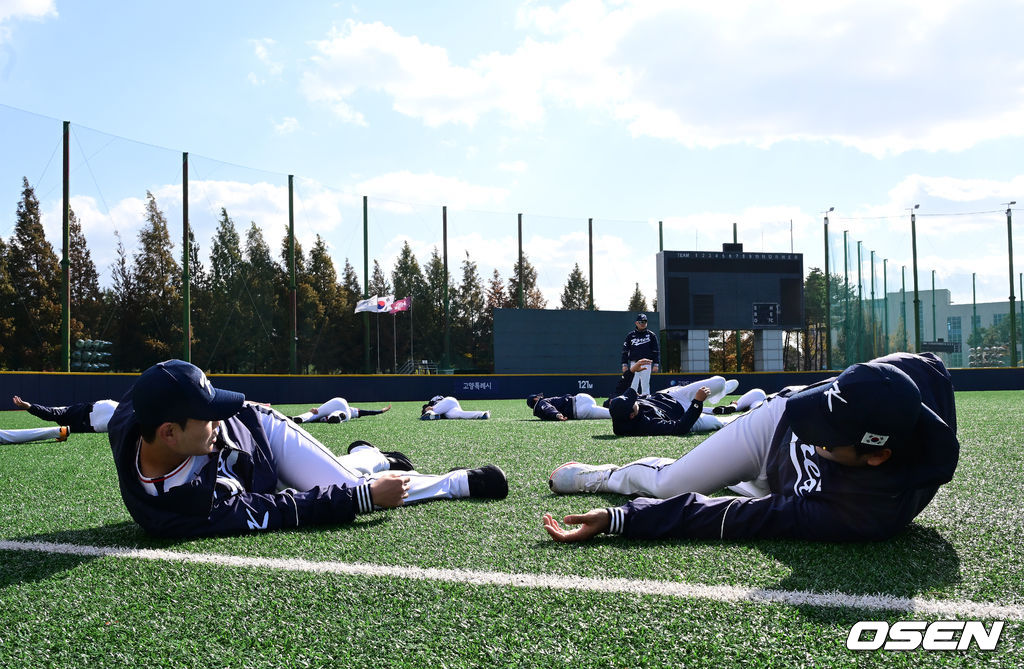 야구대표팀이 스트레칭을 하며 몸을 풀고 있다. 2025.11.02 /jpnews@osen.co.kr