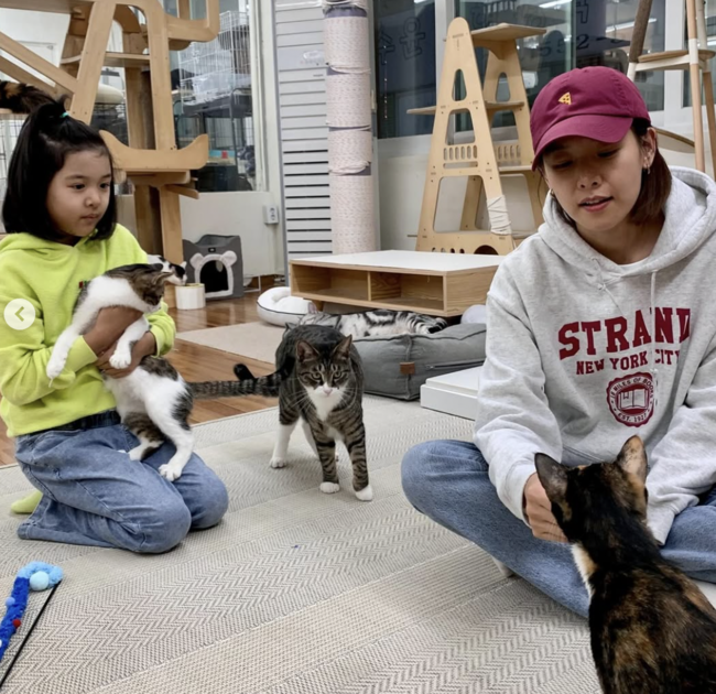 또 다른 사진에서는 조윤희와 딸이 함께 고양이들과 시간을 보내며 따뜻한 미소를 짓고 있다. 편안한 옷차림에도 조윤희의 청순한 미모와 다정한 모성미가 돋보였다.