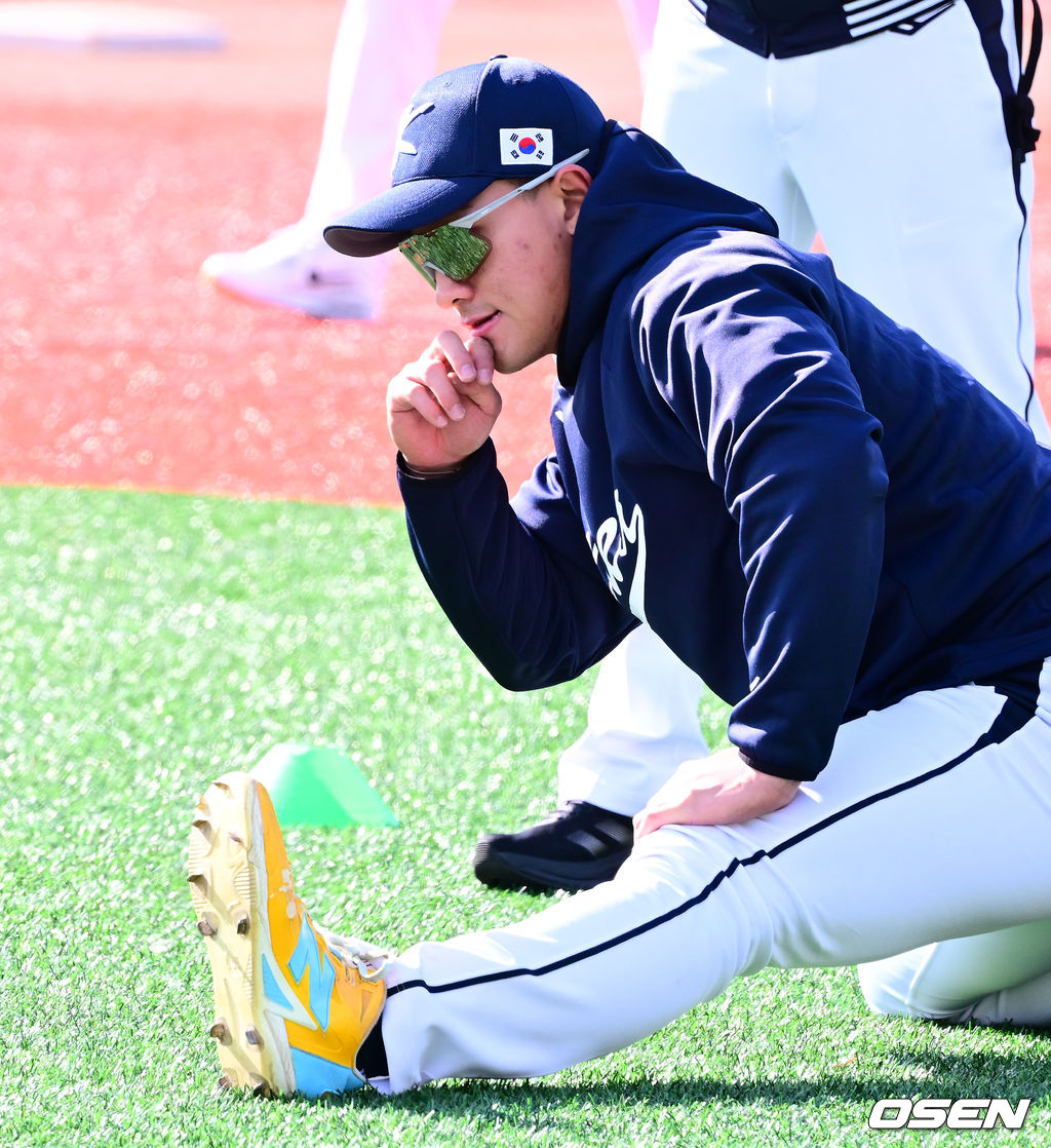 야구대표팀 안현민이 스트레칭을 하고 있다. 2025.11.02 /jpnews@osen.co.kr