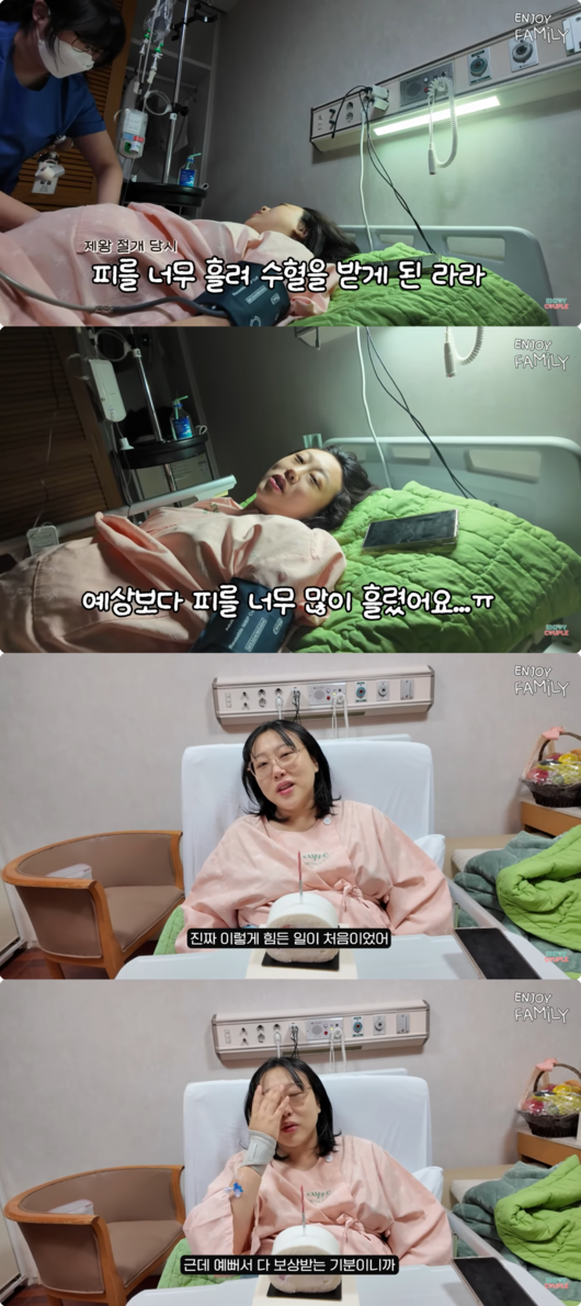 임라라는 수혈을 받으면서도 좀처럼 수치가 오르지 않아 "제가 피를 너무 많이 쏟아가지고 수혈을 했거든요 어제. 수혈을 했는데도 수치가 하나도 안 올라서. 또 어지러워"라며 다음 날까지 어지럼증을 호소했다.