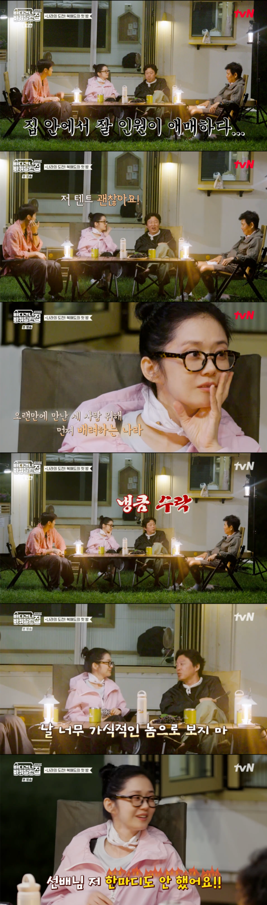 이에 김희원은 장나라의 제안을 망설임 없이 수긍하는 모습으로 좌중을 폭소케 했다. 김희원은 곧바로 "그러시죠"라고 답하며 장나라의 텐트 취침을 쿨하게 받아들였다.