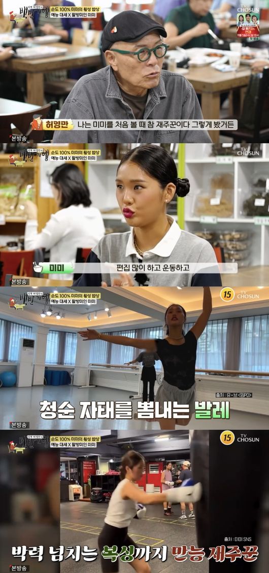 깜짝 놀란 허영만은 “우리 라이벌일 뻔 했다”라고 했고, 미미는 “한참 못 따라간다”라고 웃었다. 이어 “다음에는 국어선생님 꿈꾸다가 춤을 좋아해서 춤을 추게 됐다. 이제 자연스럽게 (오마이걸로 데뷔했다)”라고 설명했다.