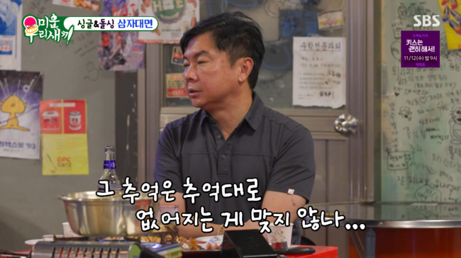 김희철과 윤민수가 “너무 아깝지 않냐”, “중고 마켓에 팔지 그랬냐”고 하자 임원희는 “추억은 추억대로 없어지는 게 맞지 않나 싶었다”라며 집을 나올 때는 전처가 그냥 나갔다고 전했다.