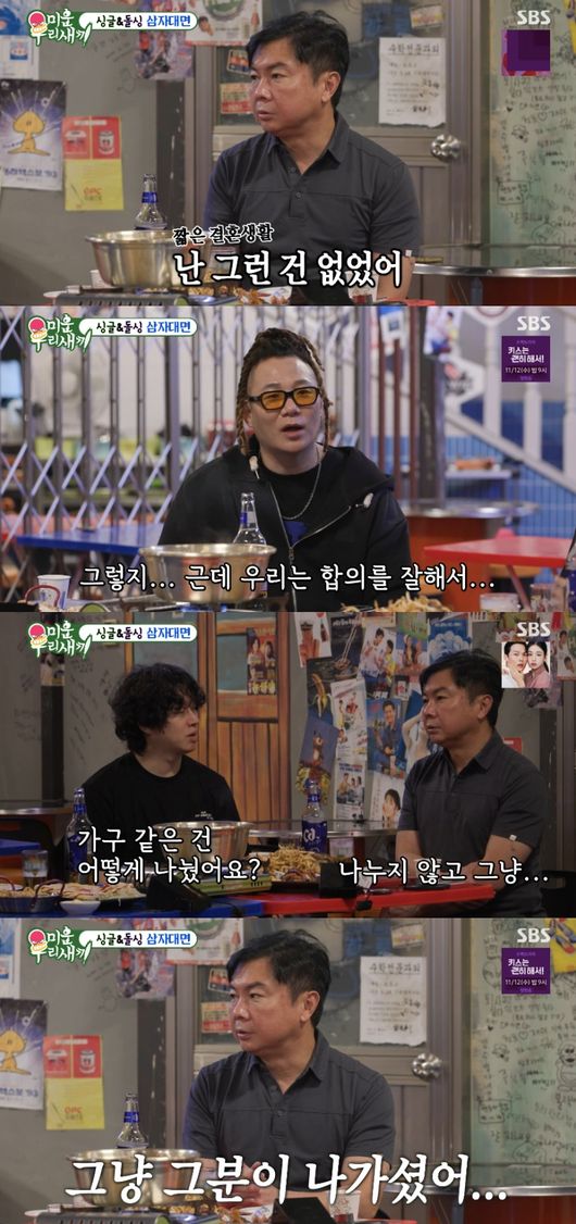 그러자 김희철은 ‘이혼 1년차’ 윤민수에 “형은 많이 나눴냐”라고 물었다. 윤민수는 “그렇지. 근데 우리는 합의를 잘해서”라고 말문을 열었다.