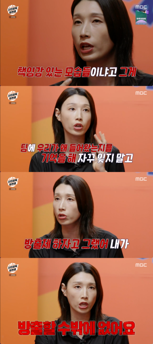 김연경은 "내보내자고. 처음하고 지금 마음가짐 아예 다른데? 그렇게 보이는데? 열심히 안 하고 못 따라오는 사람들은 방출할 수밖에 없어요. '다른 자극 줄 수 있는 게 아무것도 없는데 지금?' (이런 생각에) PD님한테 방출제를 하자고 했다"라고 말해 모두를 긴장하게 만들었다.
