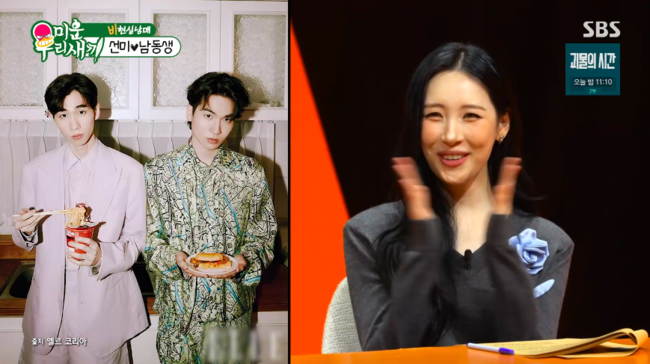 2일 방송된 SBS 예능 ‘미운 우리 새끼’(이하 ‘미우새’)에서는 가수 선미가 스페셜 MC로 등장한 가운데 훈훈한 동생들을 공개했다.