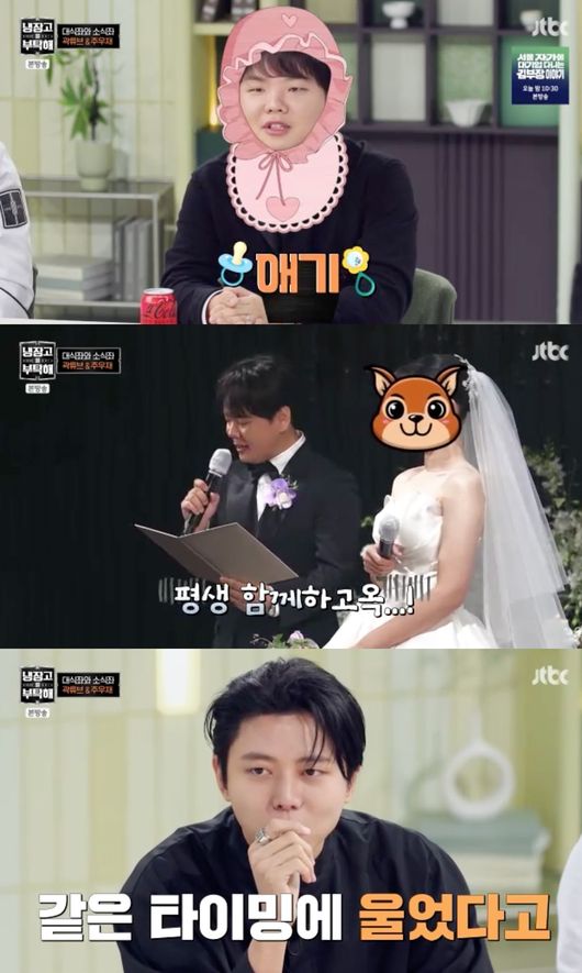 이날 방송에서는 결혼식 당시 곽튜브의 ‘눈물’ 논란도 언급됐다. 주우재는 “결혼식에서 곽튜브가 혼인서약서를 읽으며 울었다. 리허설 때도 같은 구간에서 울었다고 하더라”고 폭로했고, 김풍은 “너무 연기톤이었다”며 농담을 던졌다. 이에 곽튜브는 “리허설 때도 눈물이 나긴 했는데 본식에서도 또 울었다”고 해명했다.