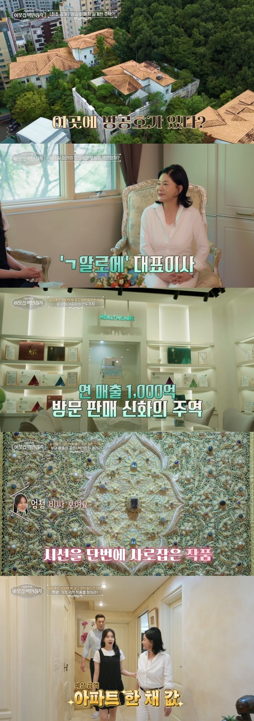 특히 '이웃집 백만장자'에서는 최연매의 초호화 저택 내부가 처음으로 공개될 예정이어서 더욱 기대가 높아진다. 그녀가 거주하는 곳은 15년 연속 '대한민국에서 가장 비싼 공동주택'으로 이름을 올린 강남 최고급 빌라다.