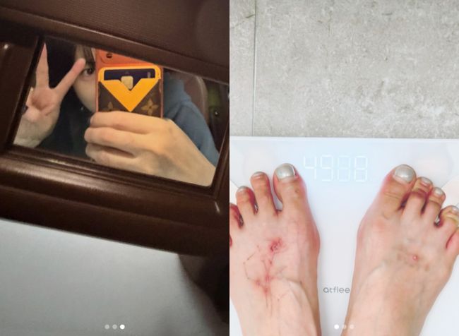 공개된 사진 속에서 현아는 체중계에 올라간 모습이다. 체중계에는 선명하게 49kg가 담겨있다.
