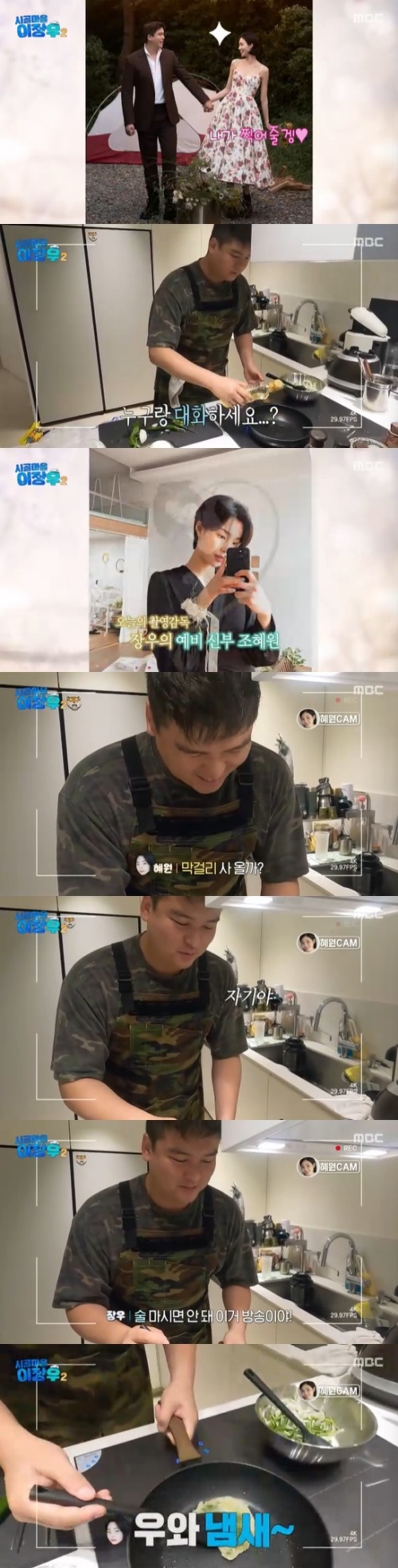 이장우는 예비신부에게 설명해 주면서 요리했고, 조혜원은 촬영감독으로 변신했다. 이장우는 고구마묵전을 구웠고, 조혜원은 "막걸리 사올까?"라고 물었다. 이장우는 "자기야~ 술 마시면 안 돼. 이거 방송이야"라며 웃었고, 조혜원은 "우와 냄새 좋다"고 했다.