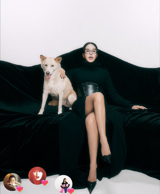 가수 겸 배우 엄정화가 반려견과 함께 엘르 코리아 커버 촬영을 진행했다.