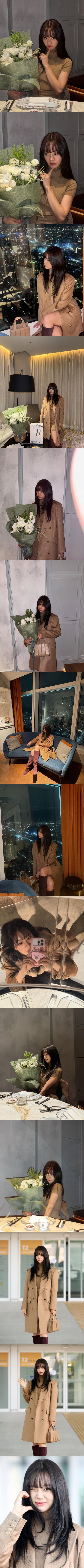 특히, 꽃다발을 들고 있는 혜리의 모습이 눈길을 끈다. 혜리의 얼굴 크기는 들고 있는 꽃다발 속 가장 큰 꽃송이와 비교해도 될 만큼 작아 보인다.