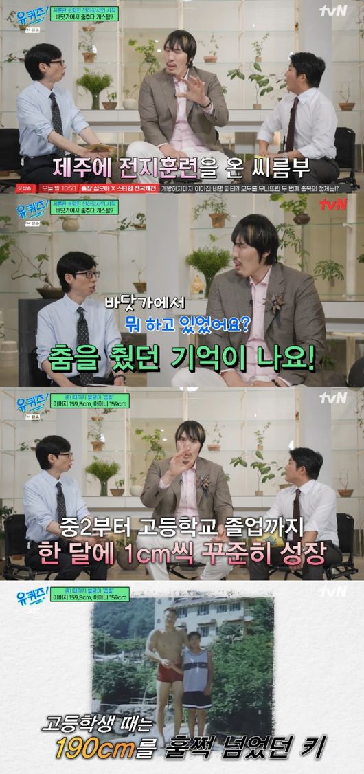 중학교 3학년 때는 185cm, 고등학교 올라가면서 부터는 190cm이었다며 “저도 한 번씩 거울을 보면서 놀랄 때가 많았다. 무릎이 쓰라린 게 많았다. 간질간질하고”라고 전했다.