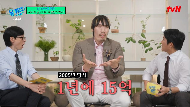 최홍만은 “그때 당시에 씨름이 저희 팀이 씨름이 해체를 앞둔 상황이 됐다. 그 시기에 스카우트 제의가 됐다. 처음엔 꺼려했다가 조건이 너무 좋았다. 어린 나이에도 불구하고 1년에 15억 제안이 들어오니까”라고 밝혀 놀라움을 안겼다.