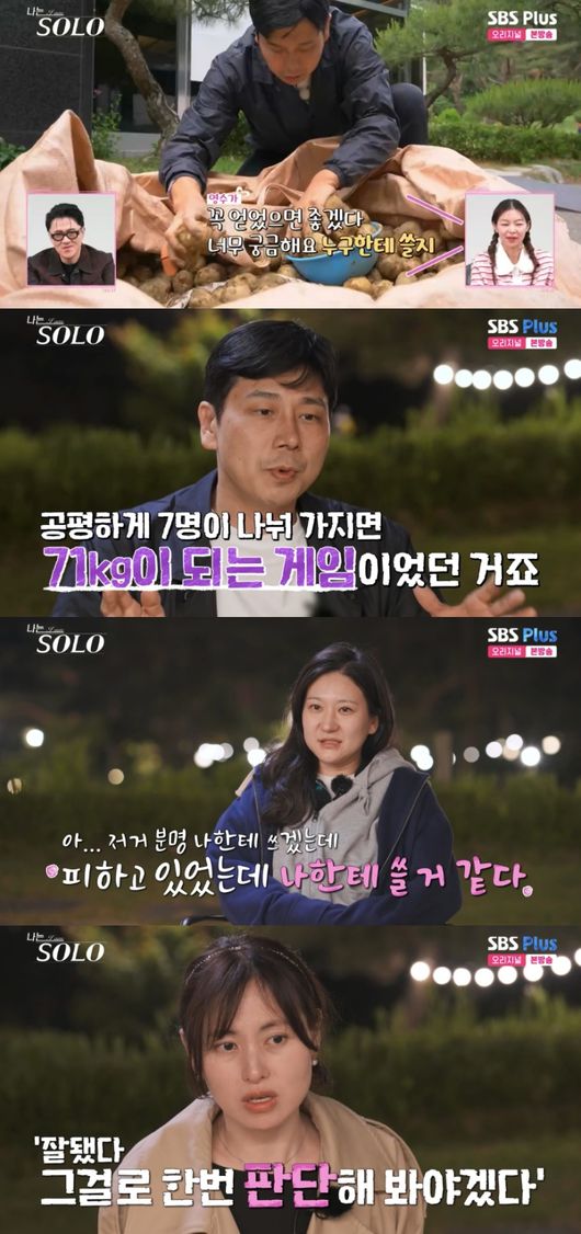 이날 슈퍼 데이트권 획득 게임으로 ‘감자 퍼담기’로 미션이 펼쳐졌다. 포대에 감자 71kg을 담아오는 사람이 슈퍼 데이트권을 획득하는 방식으로, 정확하게 제작진의 의도를 꿰뚫은 영수가 74.1kg 오차범위 3.1kg로 슈퍼 데이트권을 획득했다.