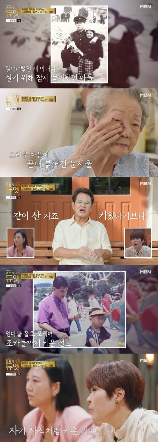5일 첫 방송된 MBN 예능 '언포게터블 듀엣'에서는 히트곡 '한동안 뜸했었지'로 사랑받은 밴드 사랑과 평화의 보컬 이철호가 노모와 함께 출연했다.