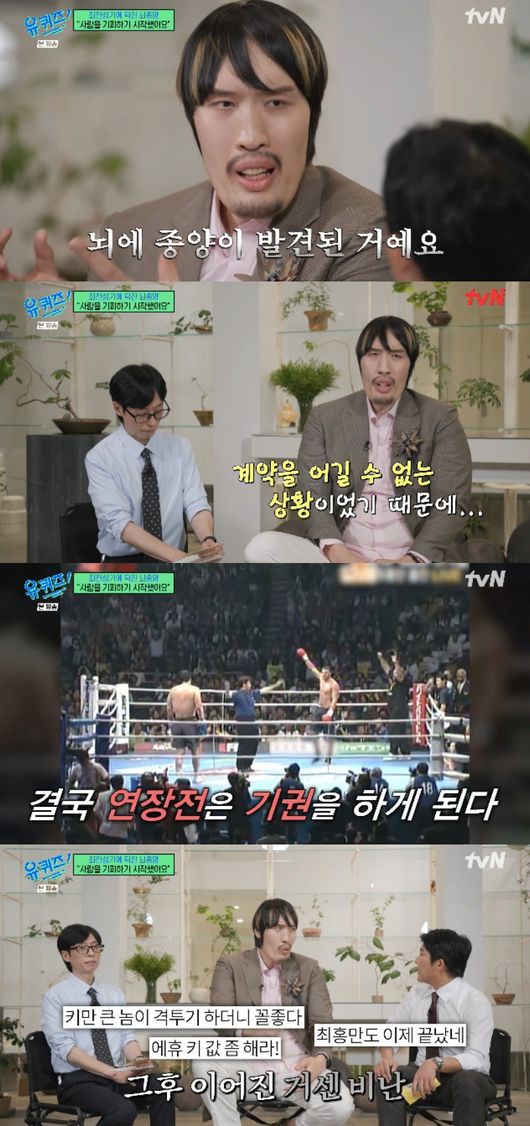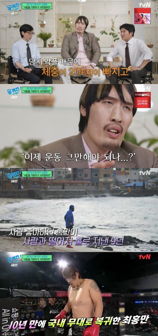 5일 방송된 tvN 예능 ‘유 퀴즈 온 더 블럭’(이하 ‘유퀴즈’)에서는 ‘끝없는 사투’ 특집으로 이종격투기 선수 최홍만이 출연해 선수로서 복귀를 언급하는 모습이 그려졌다.