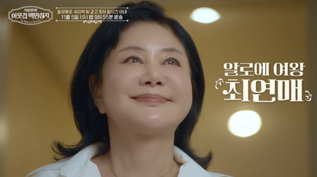 5일 방송된 EBS '서장훈의 이웃집 백만장자'(이하 '이웃집 백만장자')에서는 국내 알로에의 대중화를 이끈 기업, 김○문알로에 대표 최연매가 출연해 눈물과 집념으로 일군 성공 스토리를 공개했다. 최연매는 2005년 세상을 떠난 창업주이자 남편 故김정문 회장의 뒤를 이어 2006년부터 20년째 회사를 이끌고 있다. 1975년 설립돼 '이름 자체가 브랜드'일 정도로 성공을 거뒀던 회사는 창업주의 투병과 함께 부도 위기에 내몰렸다. 최연매는 남편을 대신해 '사모님'이라는 이름을 버리고 경영 일선에 나섰지만, 그녀에게 쏟아진 건 회사 안팎의 차가운 시선과 조롱이었다. 하지만 최연매는 "이 회사를 지켜야 한다"는 사명감 하나로 모든 비난을 정면 돌파했다. 그 결과 10년 만에 400억 원의 빚을 모두 갚고, 현재는 '연 매출 1000억 원' 규모의 글로벌 브랜드로 재도약했다.