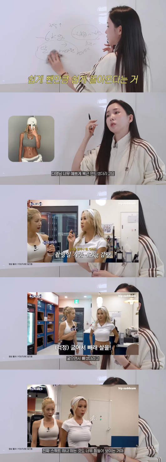 이어 웨이는 최근 솔로로 데뷔한 우주소녀 다영을 언급하며 “너무 예쁘게 복근 만드셨더라고요. 저도 자극이 됐다. 너무 궁금해서 찾아봤는데 단기간에 12kg를 뺐다더라. 근데 조금 안타까웠던 게 굶으면서 뺐대. 심으뜸 님 유튜브에 나와서 운동을 하는데 진짜 스쿼트 하나도 너무 힘들어 보이는 거야”라고 말했다.