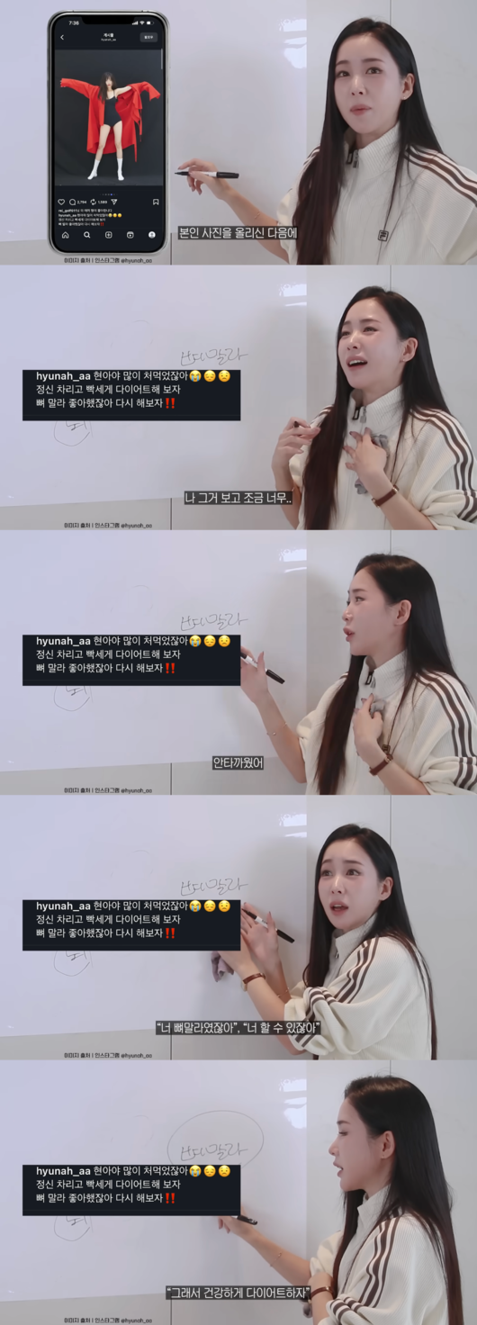 또한 웨이는 현아의 SNS를 거론한 뒤 “현아님 최근에 살 찌셨잖아. 인스타에 그거에 막 빠지셔서 본인 사진을 올린 다음에 ‘너 뼈말라였잖아’ 나 그거 보고 너무 안타까웠다”면서 “본인 자신을 자책하면서 올리셨더라고. 저는 ‘뼈말라였잖아. 건강하게 다이어트 하자’ 마음 먹었으면 괜찮아요. 근데 ‘많이 X먹었잖아’ 이렇게 올리셨더라”고 안타까워했다.