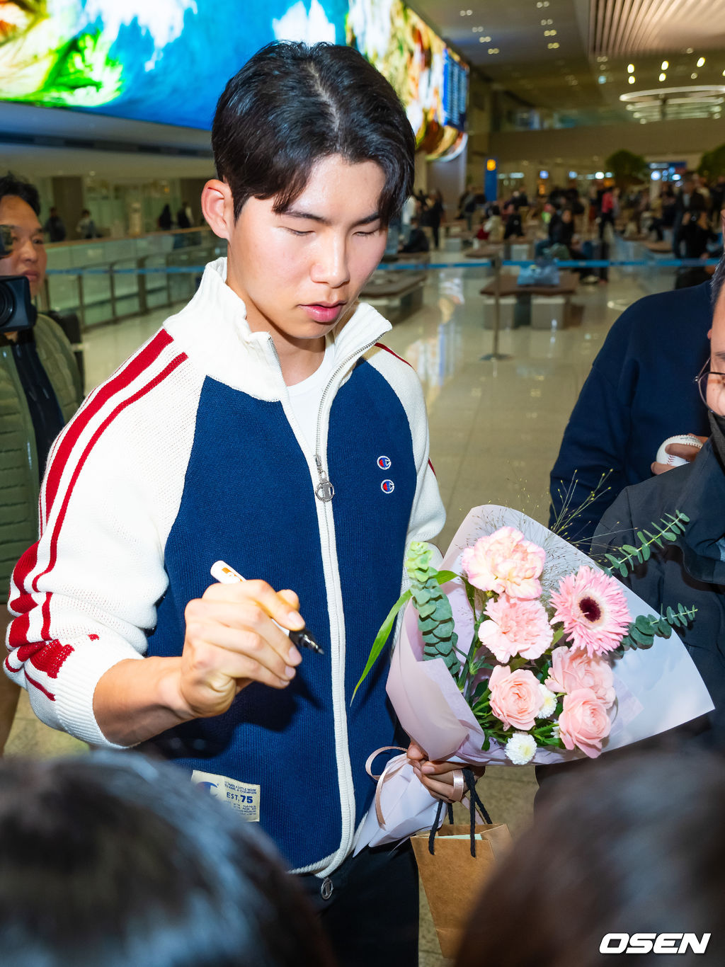 김혜성이 입국장 앞에서 팬들에게 사인을 해주고 있다. 2025.11.06 /rumi@osen.co.kr