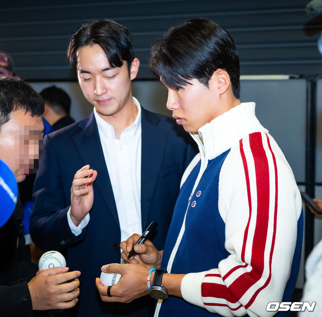 김혜성이 입국장 앞에서 팬들에게 사인을 해주고 있다. 2025.11.06 /rumi@osen.co.kr