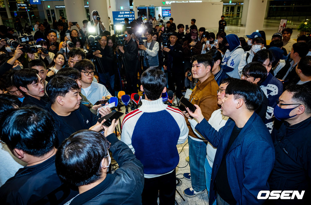김혜성이 입국장 앞에서 인터뷰를 하고 있다. 2025.11.06 /rumi@osen.co.kr