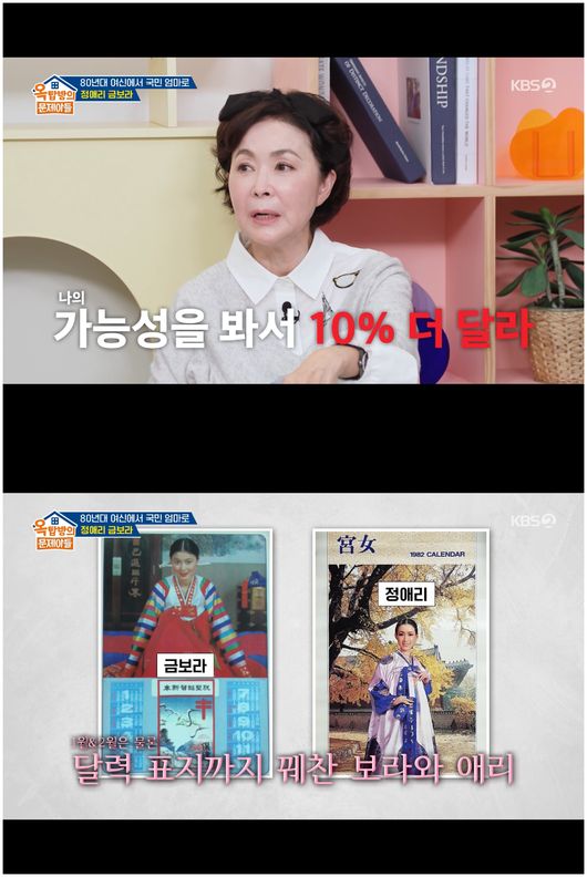 6일 방영한 KBS2TV 예능 ‘옥탑방의 문제아들’에서는 배우 정애리와 금보라가 등장했다. 신 스틸러는 당연하거니와 대중에게 인기작으로 화제가 되는 드라마에서 꼭 시선을 끄는 역할로 사랑을 받아온 두 사람은 '아내의 유혹' 이후 또 한 번 합을 맞출 계획이었다.