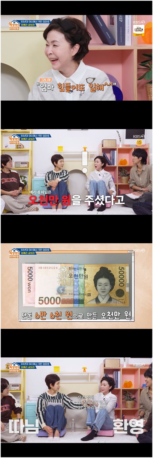 또한 정애리의 딸은 대학 졸업 후 영어 강사로 일하며 어머니를 위해 오천만 원을 모아 줬다면서, 금보라를 더더욱 부럽게 했다.