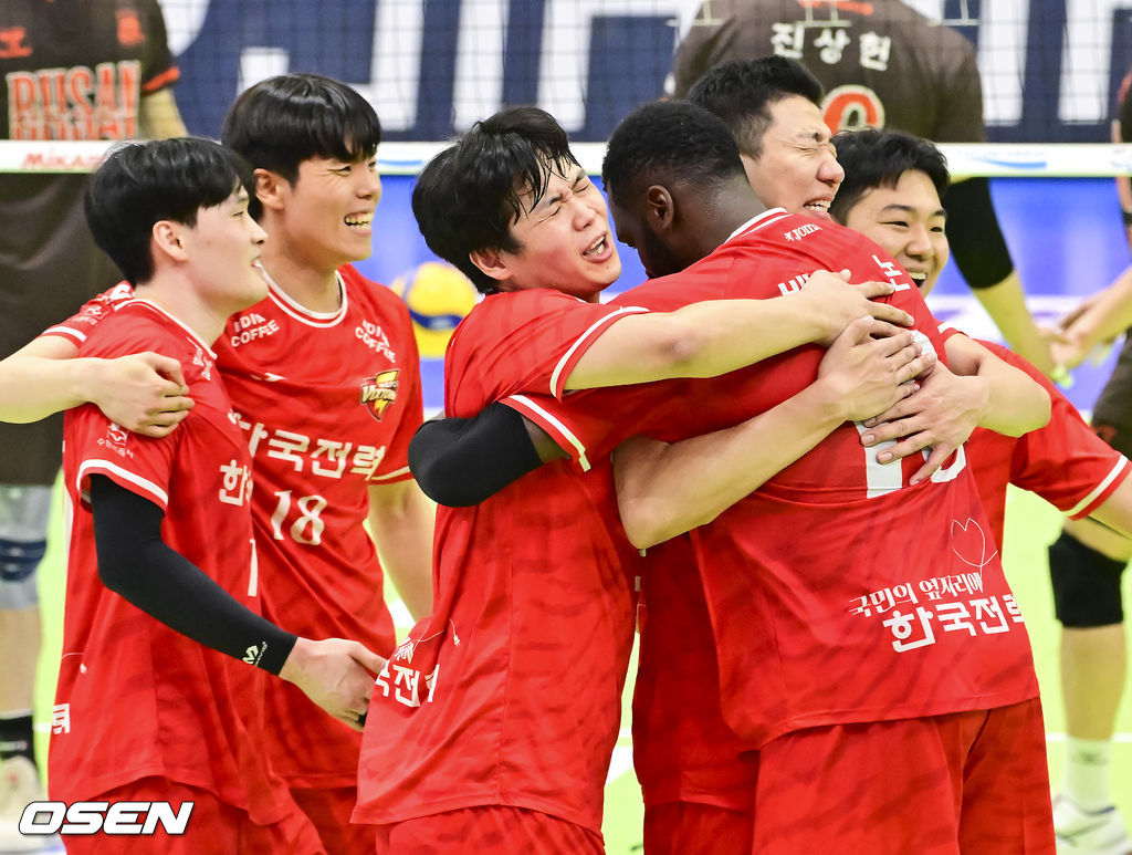 한국전력이 6일 수원실내체육관에서 열린 진에어 2025~2026 V-리그 남자부 1라운드 경기에서 OK저축은행을 3-2(30-28, 25-18, 23-25, 20-25, 15-12)로 꺾고 2연승 달성했다.