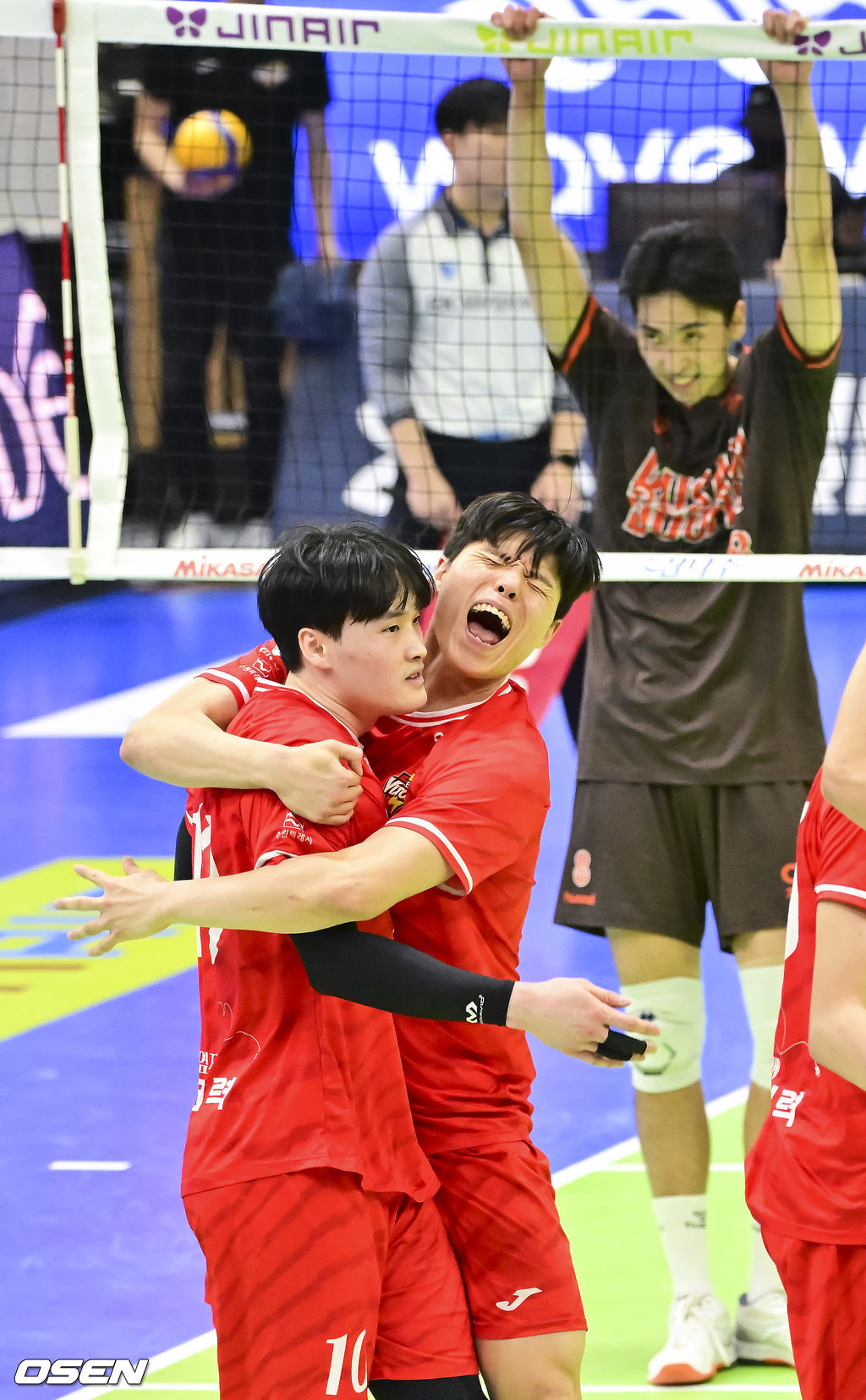 경기종료 후 한국전력 김정호와 전진선이 승리의 기쁨을 나누고 있다. 2025.11.06 / soul1014@osen.co.kr
