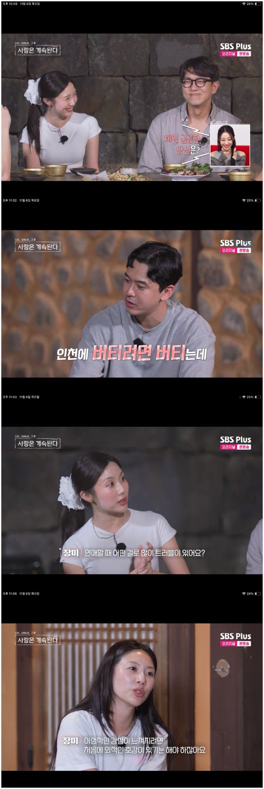 이에 장미는 “아기 생각 있는지, 이런 걸 물었다. 나는 아이가 내게 줄 행복이 있을 거 같다. 그리고 내가 멋있다고 생각한 사람을 섬기면서 살고 싶다. 그리고 친구 같은 엄마, 센스 있는 엄마로 살고 싶다”라며 남자의 가부장제에 대한 욕망과 당연함을 자극하는 발언으로 영수를 놀라게 했다.