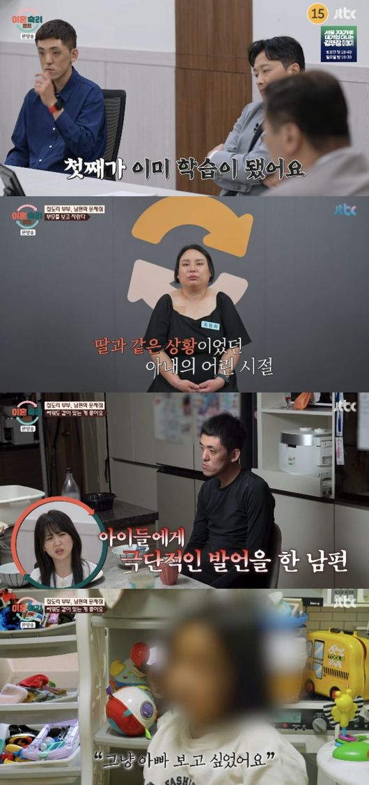또 다른 문제점은 남편이 아이들 앞에서 극단적인 말을 하는 거였다. 아내는 “법원 갔다온 날 제 뒷담화 내용을 보고 싸웠다. 아빠가 나가니까 첫째가 ‘아빠 죽어? 아빠 죽으러 간대. 말려봐’ 난리가 났다”라고 설명했다.