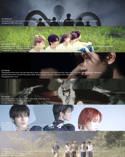 여기에 블록버스터 영화 오프닝처럼 다크 판타지의 시작을 알리는 ‘Paracosm(파라코즘) (Intro)’, 출구 없는 미로와 혼돈 속에서 소년들의 의지를 담아낸 ‘Escher(에셔)’, 두려움조차 웃음으로 바꿔버리는 자신감과 유쾌한 텐션이 넘치는 ‘Buzzin’(버진)’, 허상의 덫에 갇힌 자들의 절망을 담은 ‘LUKOIE(루코이에)’, 혼돈 속에서도 서로를 붙잡고 발걸음을 내디딘 소년들의 이야기를 그린 ‘Black Moon(블랙 문)’까지 총 6곡이 수록된다.