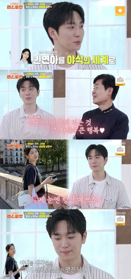 부부의 단골 야식 메뉴로 치킨과 떡볶이를 먹는다고 하자 이연복은 “연아 씨는 야식 먹은 다음 날도 예쁘냐. 얼굴 붓잖아”라고 궁금해했다. 이에 고우림은 “예쁘다. 제 눈엔 항상 예쁘다”라고 답했다.
