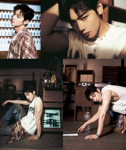 먼저 낮 버전 포토에서 차은우는 스트라이프 셔츠와 청바지, ‘unframe’(언프레임)이 새겨진 티셔츠를 매치한 룩으로 힙한 비주얼을 드러냈다. 치명적이면서도 짙은 눈빛으로 시선을 압도한 그는 의문의 지하실로 이동하는 비밀스러운 움직임으로 몰입감을 극대화했다.